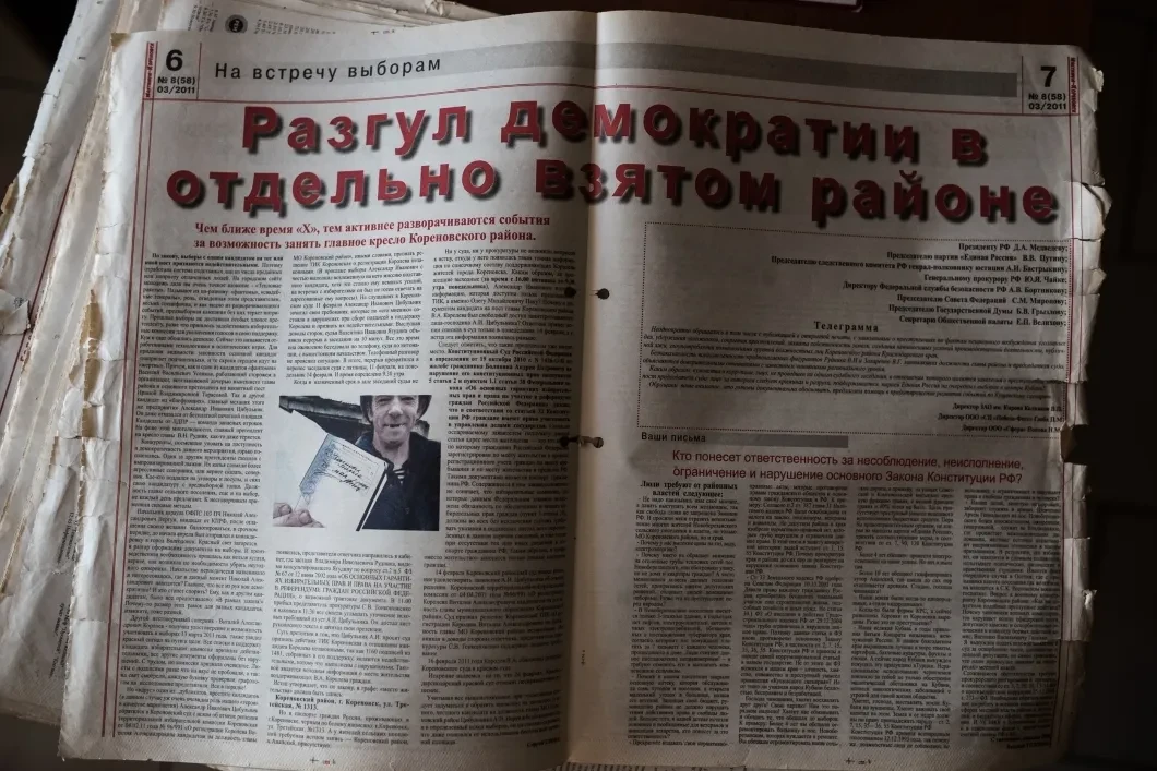 «Ярким пламенем гореть, правым словом души греть!» — это слоган. На первой странице газеты — информация о займах на строительство под материнский капитал, на последней — объявления. «Куплю вездеход в любом состоянии», «курочка-молодка, 10 месяцев». Между ними — те самые материалы, которые доводят до белого каления кореновские власти. «Власти обещали построить четыре моста через Кубань. Где же они?», «В поисках ответов», «Нарушения на выборах».