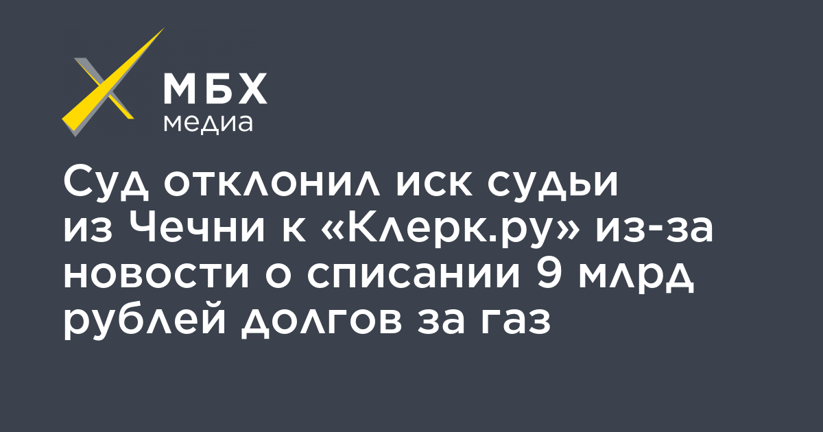 Суд отклонил иск судьи из Чечни к «Клерк.ру» из-за новости о списании 9 млрд рублей долгов за газ – МБХ медиа