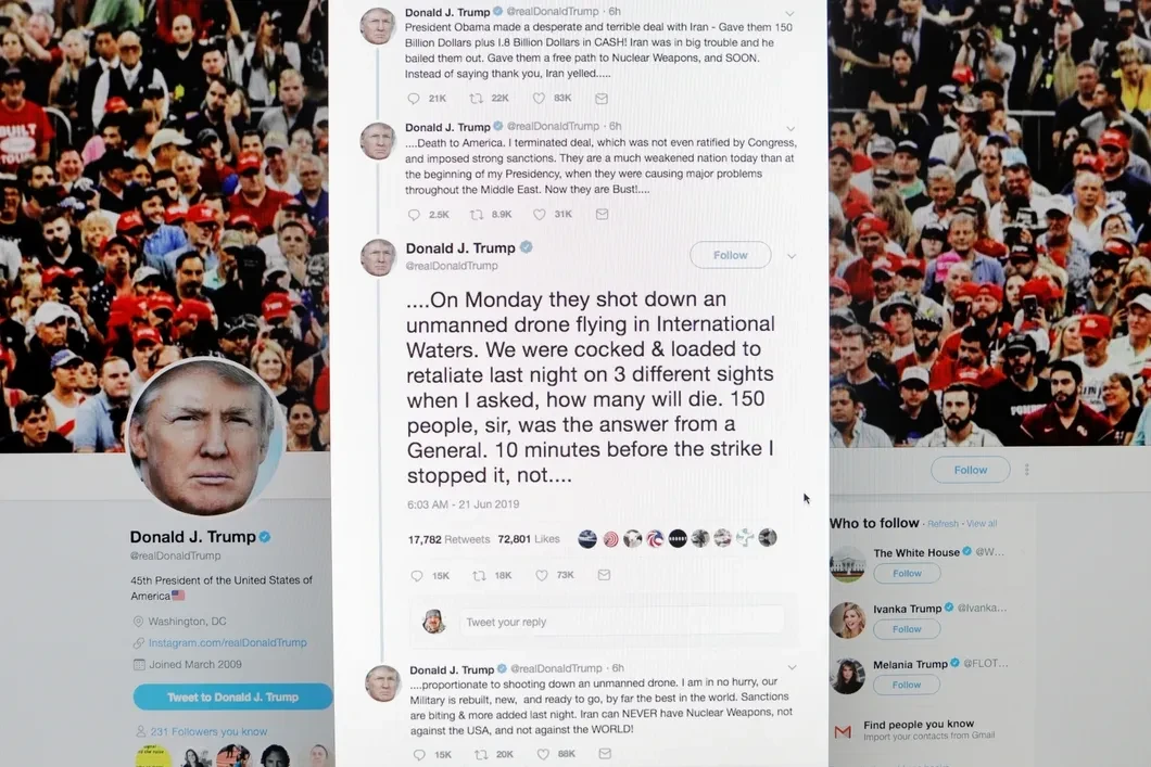 По ходу истории с RQ-4 Global Hawk Трамп через посредников и публично вновь и вновь призывал Тегеран начать переговоры «без предварительных условий», чтобы заключить сделку напрямую. Трамп по убеждениям типичный националист-изоляционист, и в 2016 году он успешно использовал предвыборный лозунг Make America Great Again (MAGA) — «Сделаем Америку снова великой». Красные MAGA-бейсболки успешно продавались, его сторонники и сейчас их носят.