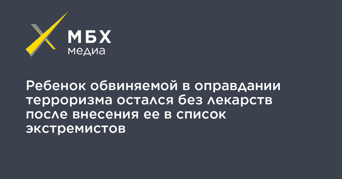 Ребенок обвиняемой в оправдании терроризма остался без лекарств после внесения ее в список экстремистов