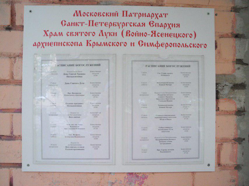 По словам Галкиной, храм святого Луки был покрашен в свою расцветку после того, как коммунальщики ликвидировали рекламу наркотиков на стенах. Она говорит, что раньше там находился пункт приема анализов.