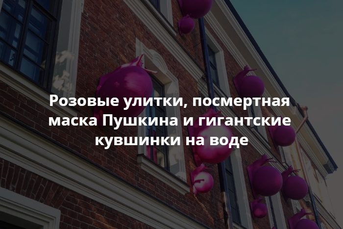 Летом в Петербурге появилось несколько уличных арт-объектов. На Новой Голландии горожане фотографируются с розовыми улитками из переработанного пластика, в парке Александрия установили копию посмертной маски Пушкина, а у Манежа — скульптуры, посвященные экологии.