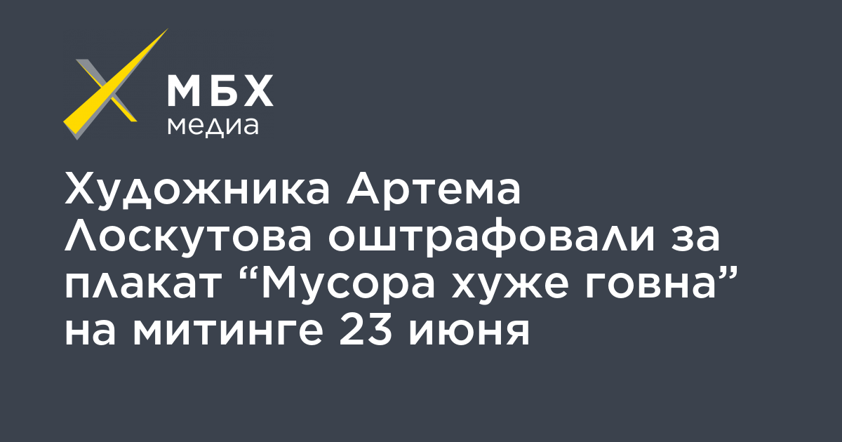Мещанский районный суд Москвы оштрафовал на 10 тысяч рублей художника Артема Лоскутова за плакат «Мусора хуже говна» на согласованном митинге «Общество требует справедливости» в поддержку корреспондента Ивана Голунова 23 июня. Об этом Лоскутов сообщил «МБХ медиа».