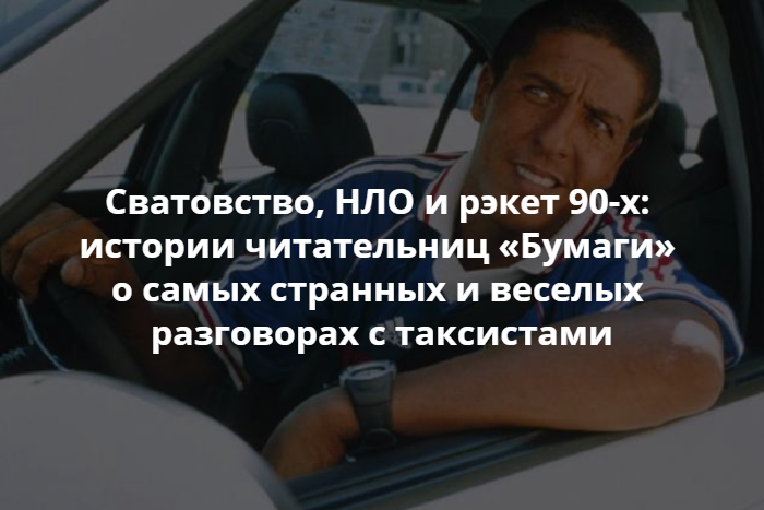 Читательницы «Бумаги» рассказывают о самых странных и забавных разговорах с таксистами.