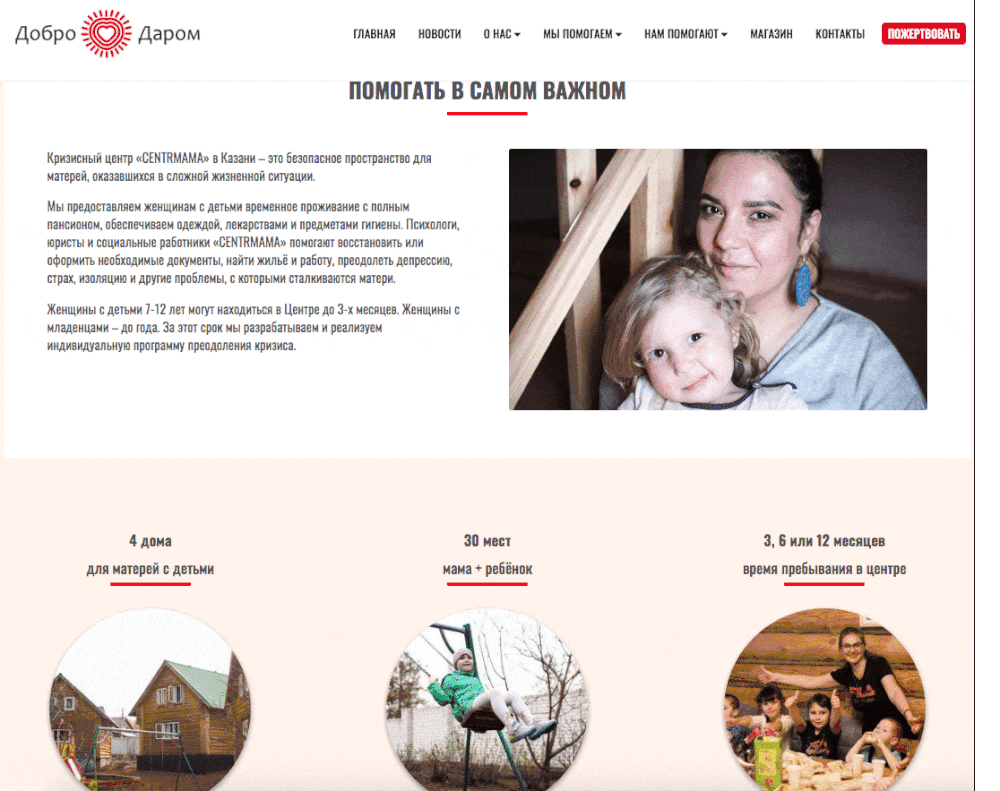 Команда казанского фонда «Добро даром» помогает одиноким женщинам с детьми и малолетним мамам. Для полноценной и постоянной помощи фонду необходимо финансирование. Именно сбор пожертвований помогает содержать оборудованный приют для женщин с детьми.