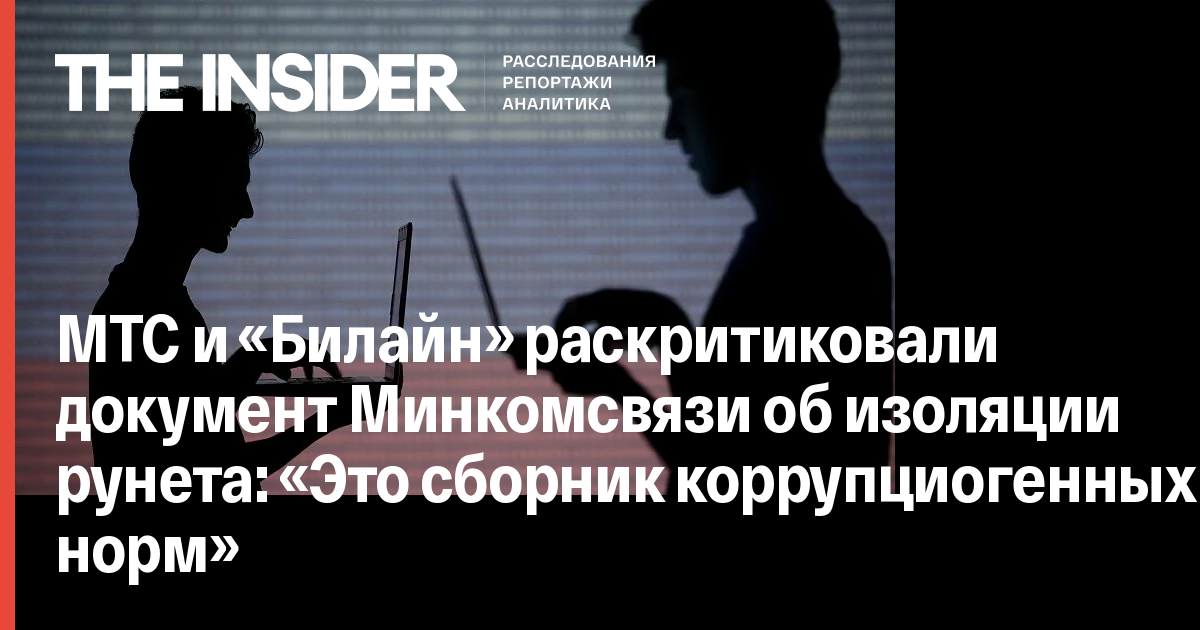 МТС и «Билайн» раскритиковали документ Минкомсвязи об изоляции рунета: «Это сборник коррупциогенных норм»