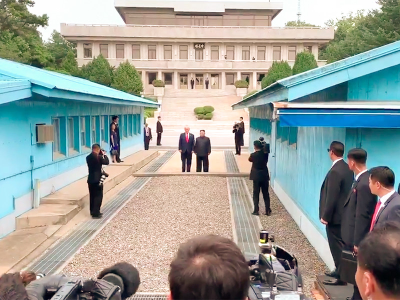 Президент США Дональд Трамп в воскресенье прибыл в демилитаризованную зону в приграничный пункт Пханмунджом и осмотрел с наблюдательного пункта приграничные сооружения в КНДР. После этого Трамп, лидер КНДР Ким Чен Ын и президент Южной Кореи Мун Чжэ Ин впервые в истории коротко пообщались втроем на южнокорейской стороне. Прямую трансляцию вело японское телевидение, южнокрейское телевидение и телеканал CNN, передает ТАСС.