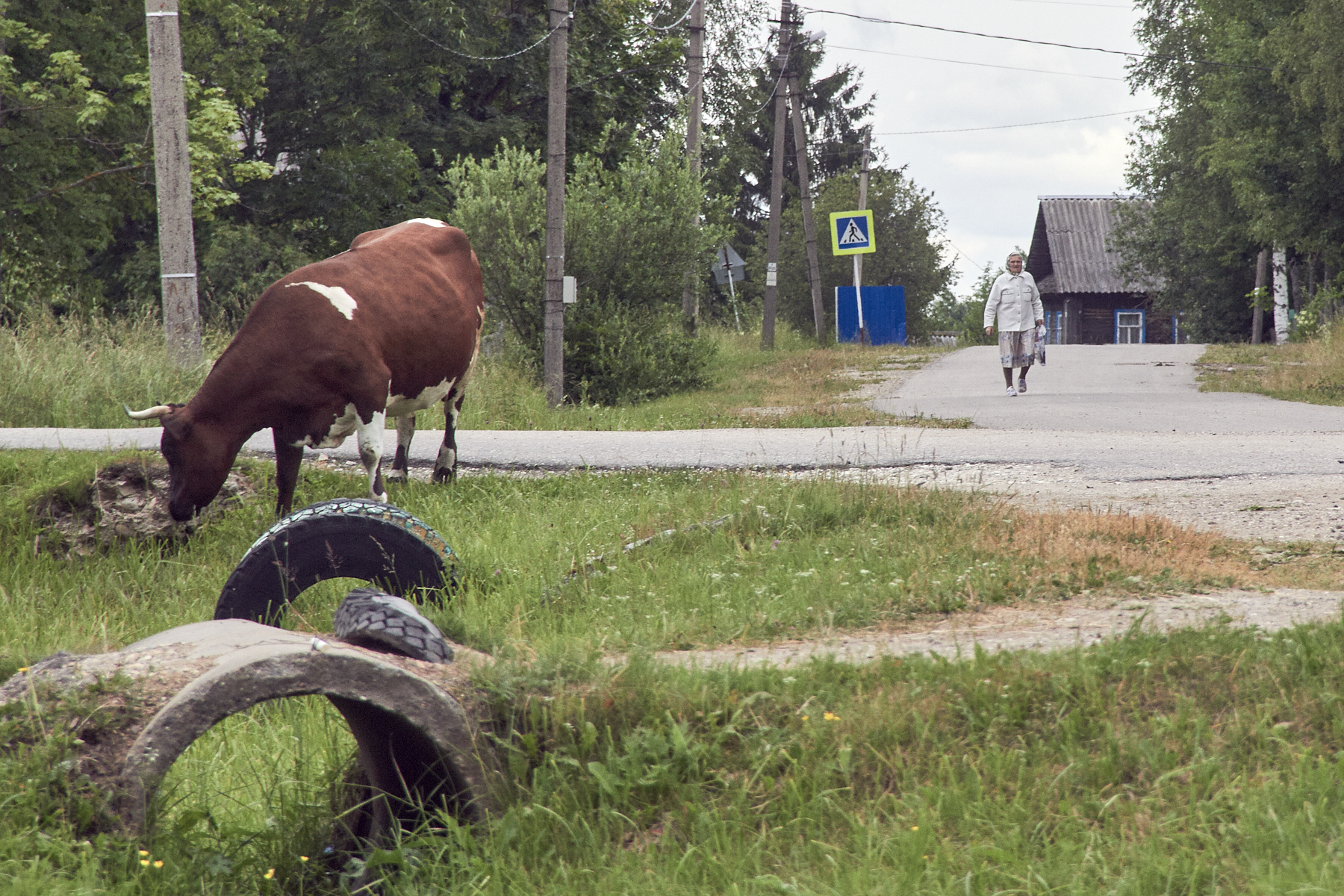Во многих деревнях ни одной коровы не осталось, говорит Николай. Исключение – деревня Броди, где к приезду автолавки в центр деревни вышло небольшое стадо. Хотя еще пять-шесть лет назад, рассказывает он, некоторые жители деревень, как в советское время, покупали по 15–20 буханок хлеба для скотины. Теперь такого нет, и логичным образом просели доходы.