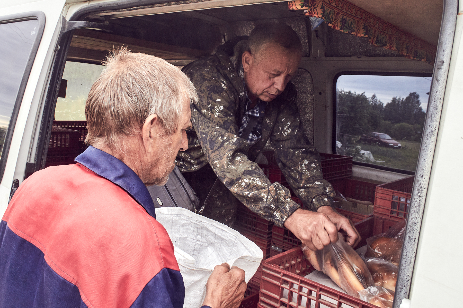 В деревне Кожухово к автолавке подходят местные мужики. Николай по дружбе привез им сигарет. Магазина нет, и если бы не автолавка, шутят местные, "ходили бы мы пешком в Боровичи". До Боровичей отсюда – 80 километров. Из-за отсутствия магазинов и аптек приходится возить по просьбам жителей хозтовары, средства от комаров и лекарства. А там, где есть магазин, люди все равно ждут автолавку, которая как раз к магазину и приезжает. "Потому что хлеб у него 32 рубля, а в магазине 40", – говорят жители деревни Броди.