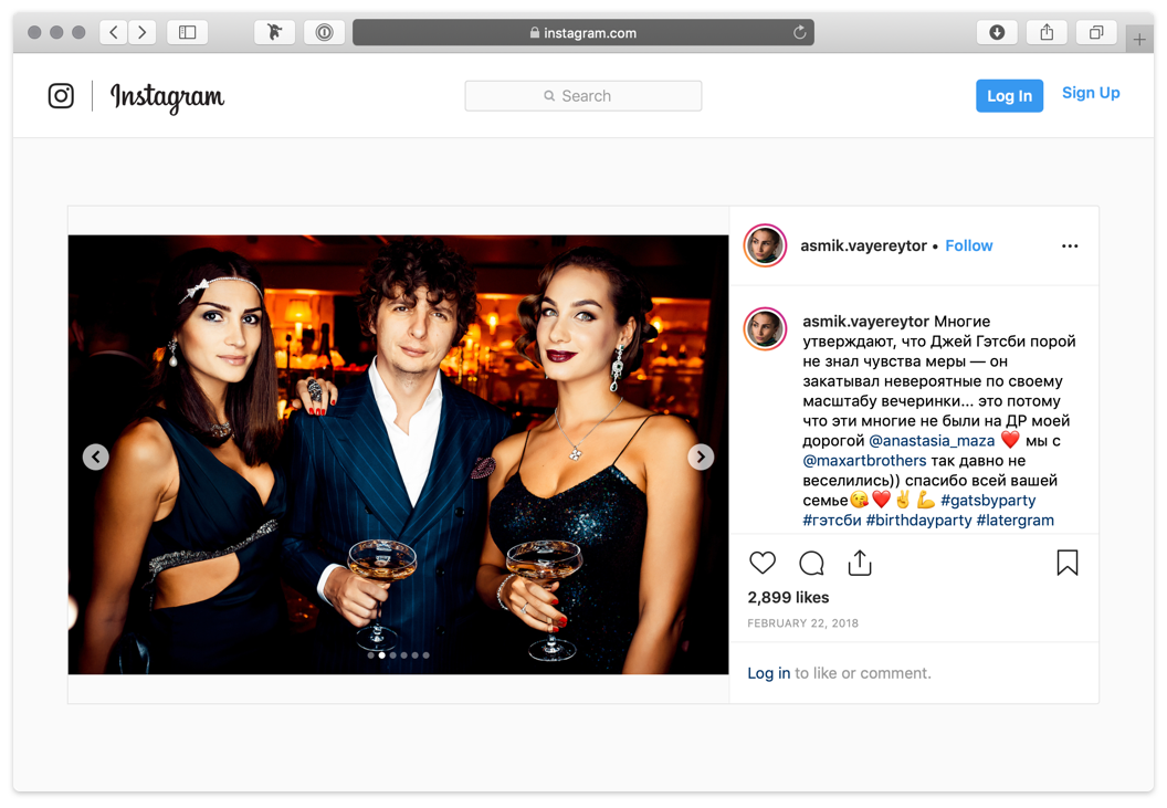 В феврале 2018 года в московском клубе Soho Rooms отмечали день рождения Анастасии Мазараки — жены Льва Мазараки (она известна как владелица одного из самых дорогих автомобилей в столице — оранжевого спорткара Lamborghini Aventador LP 700-4 стоимостью от 23,7 миллиона рублей). Вечеринка проводилась в стиле «Великий Гэтсби». Среди гостей был и директор ГБУ «Ритуал» Артем Екимов.
