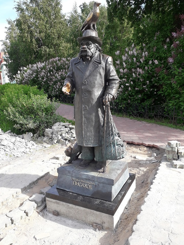 На центральном проспекте Архангельска решили навести красоту, видимо, к 435-летию города, и обновили памятник Писахову.