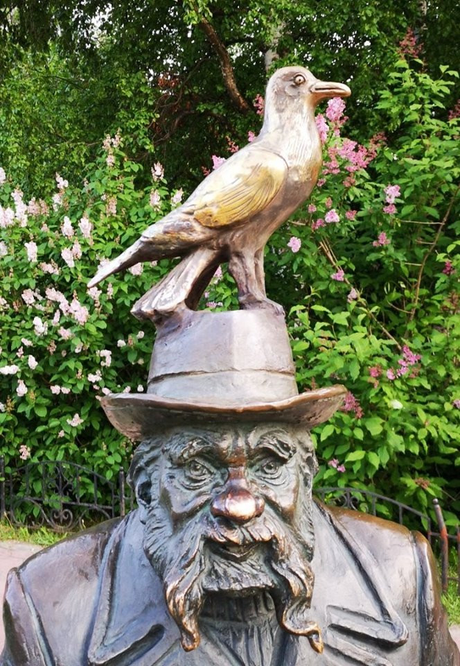 Кто не знает — памятник открыли в 2008 году и за первые восемь месяцев чайку со шляпы сказочника спиливали трижды. В итоге решили забить и оставить как есть.