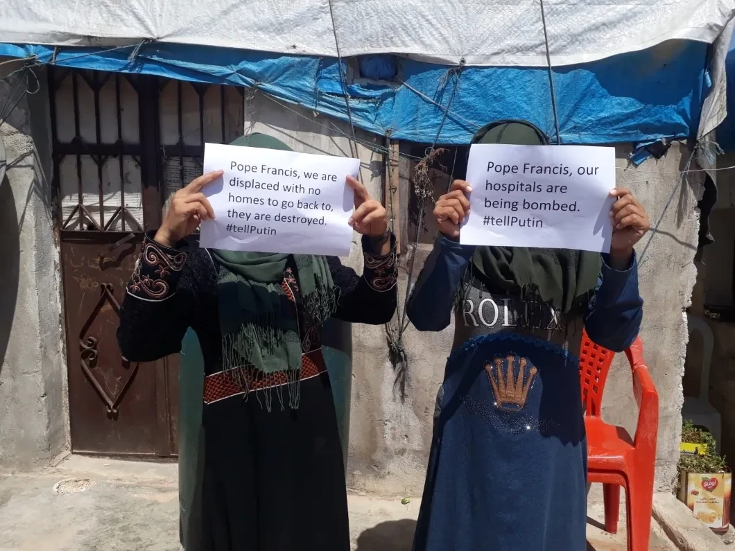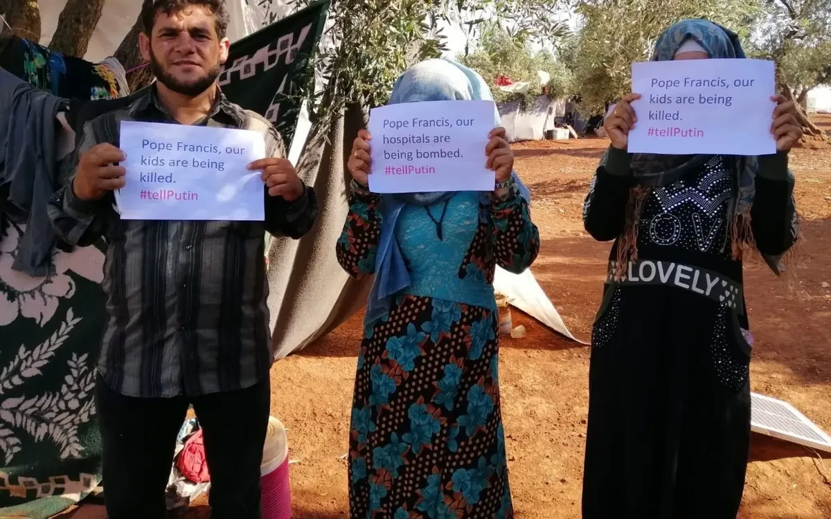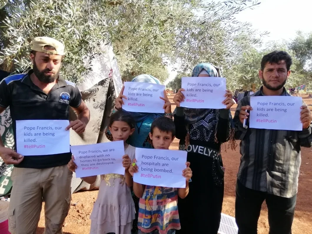 Сирийские беженцы, зажатые в Идлибе под бомбардировками российской авиации, ищут защиты у папы Римского