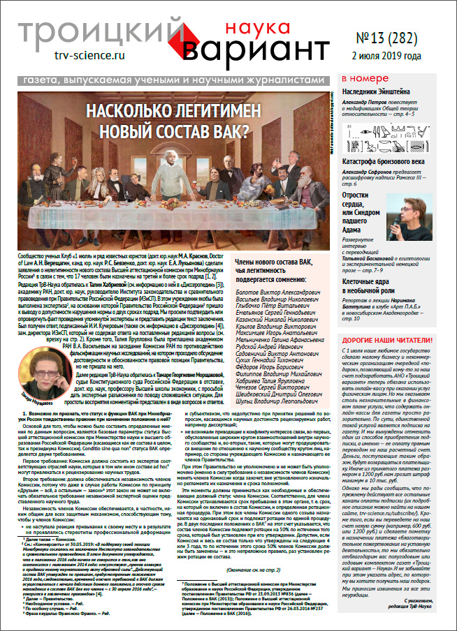 ТрВ № 13 (282) за 2019 г.: Насколько легитимен новый состав ВАК?