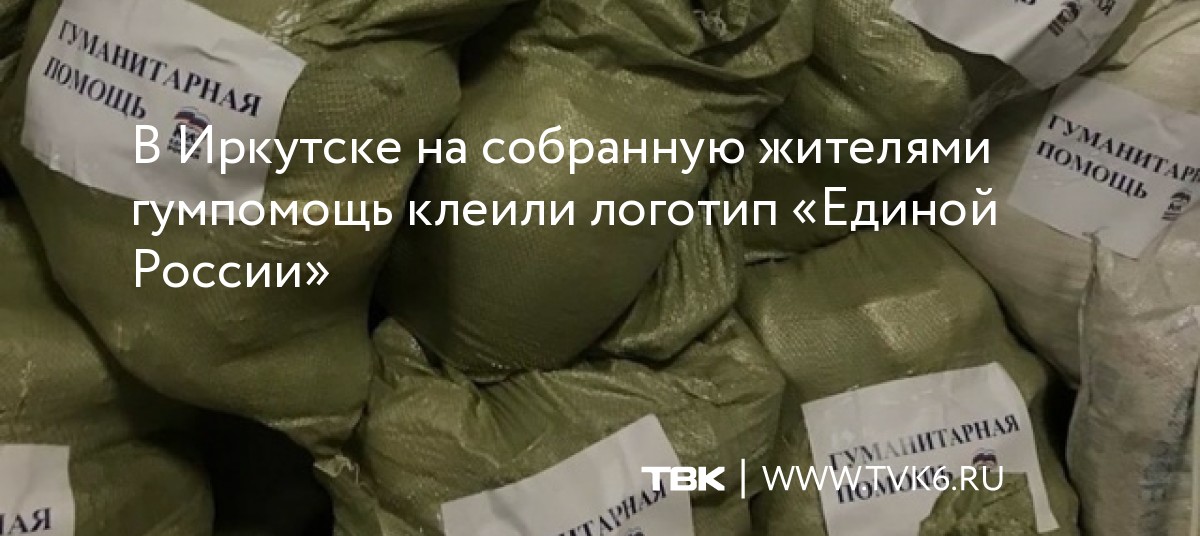 В Иркутске на собранную жителями гумпомощь клеили логотип «Единой России»