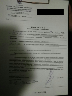 Анархисты Мария Шукалович и Денис Загладкин явились на допрос по повесткам вместе с адвокатом. Следователь, помимо вопросов о трупе, задавал им и не связанные с уголовным делом вопросы, которые не были внесены в протокол допроса.
