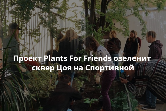 Проект Plants For Friends, занимающийся озеленением квартир, террас, кафе и офисов, 6 июля в 9:30 займется облагораживанием сквера Цоя на углу Зверинской улицы и Любанского переулка. Об этом сообщается в инстаграме Plants For Friends.