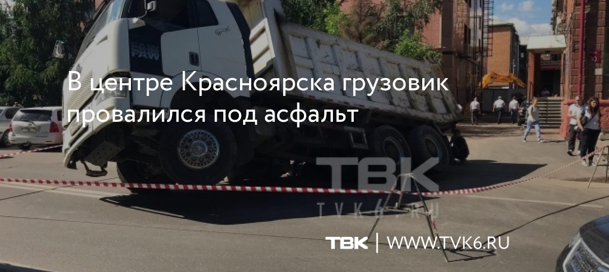 В центре Красноярска грузовик провалился под асфальт