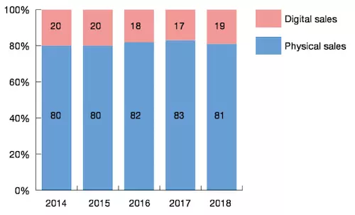 Кстати, о них. Сколько вам успели рассказать о том, что электронные книги больше никому не нужны! Никому-никому! Тем не менее на электронные книги приходится ¼ всей онлайновой книжной розницы и 28% продаж обычной художественной литературы. Их продажи за пять лет сократились примерно на четверть стараниями самих издателей, задравших цены, но они все равно остаются самым большим сегментом и онлайновых продаж, и продаж fiction вообще. Прямо даже удивительно, как упорно сопротивляются читатели конкурентному предложению качественной печатной продукции.