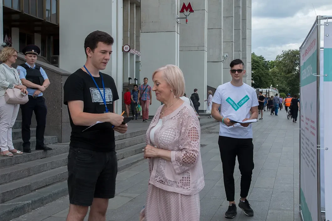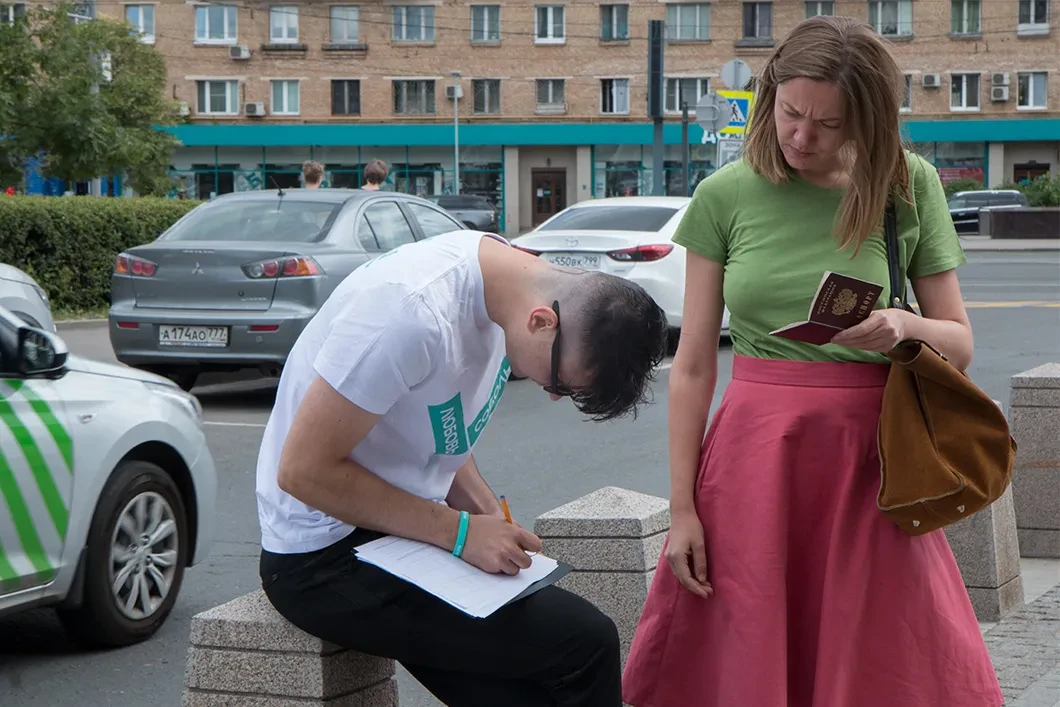 — Они [сборщики подписей за Сергея Митрохина] часто говорят людям, которые подписались за Митрохина: «Сходите еще поставить подпись за Любовь Соболь», — рассказывает мне координатор точек сбора на Пресне Арсений. — Мы тоже к ним очень лояльно относимся, стараемся помогать.