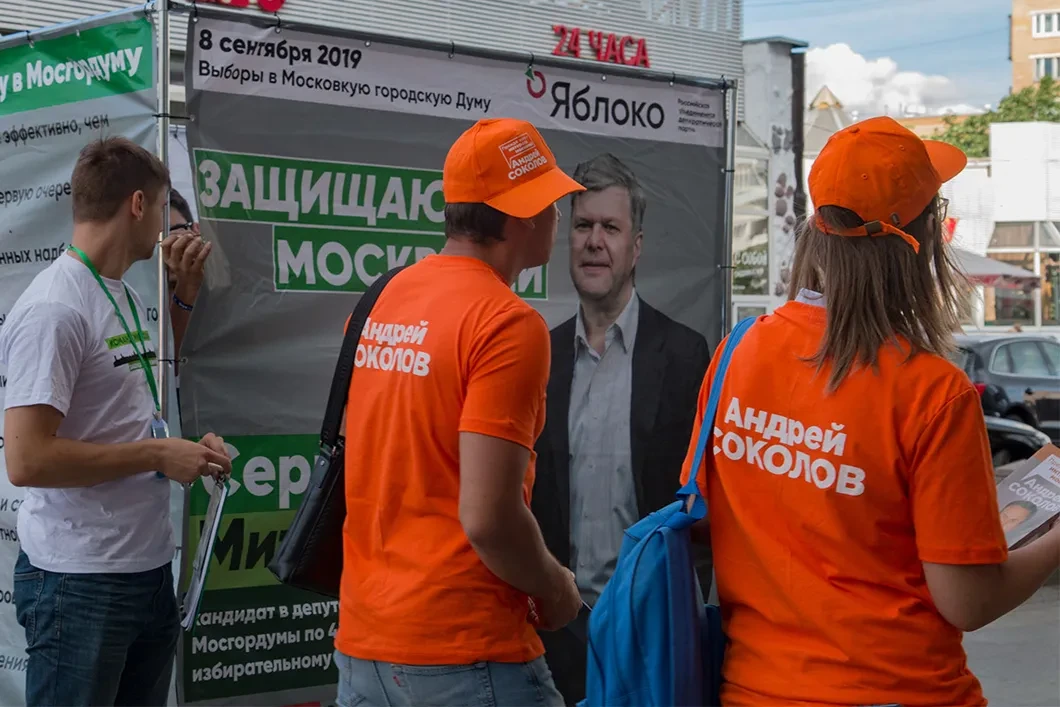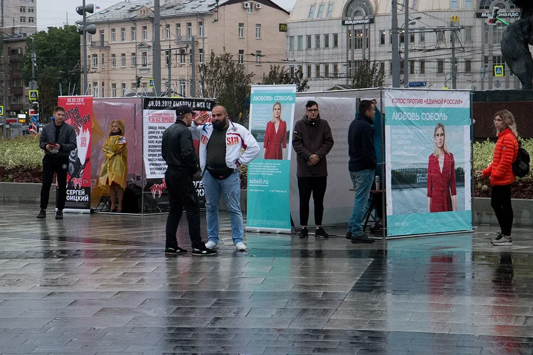 На точках у метро «Фрунзенская и «Улица 1905 года» к часу дня появляются кубы «соболевцев». Ближе к четырем-пяти подтягиваются волонтеры других кандидатов — Митрохина, Юшина, Соколова и даже Троицкого.