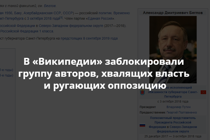Русская «Википедия» заблокировала сообщество авторов, которые хвалили губернаторов и критиковали оппозицию