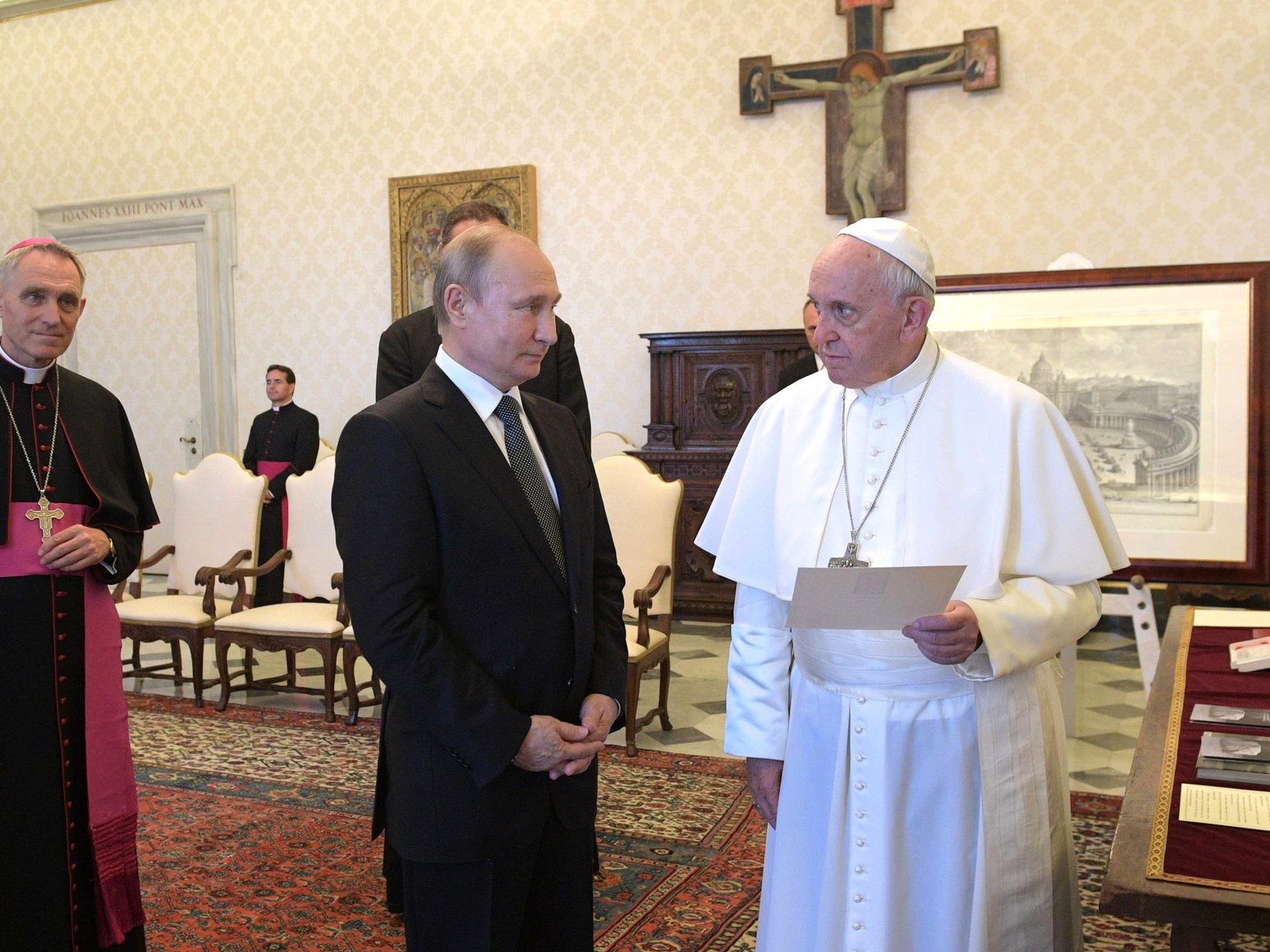 Как сообщалось, Папа римский Франциск и Владимир Путин беседовали около часа во время визита российского президента в Ватикан.