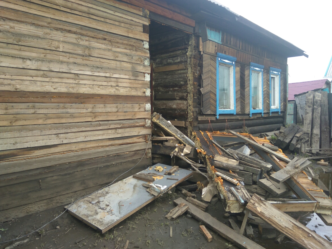 Дом полностью затопило, штукатурка со стен сыплется, в доме образовались дыры, в фундаменте тоже, погреб полон воды. Смыло весь огород, стайки (так в Сибири называют хозяйственные постройки, хлевы – НВ), дрова полностью уплыли, заборы попереломало. Не знаю, на что мы будем ремонтироваться. Нам дали 50 тысяч [рублей], по 10 тысяч на человека, а толку-то от них: какие-то вещи и по мелочи купить и все. У нас ремонта будет тысяч на 300, если не больше. В дом страшно заходить: брус сгнил, полы, крышу надо полностью менять. Что наживали столько лет – все смыло. Говорят, что выделят максимум 100 тысяч, на большее можно не рассчитывать. А куда эти 100 тысяч? Даже полы поменять не хватит.