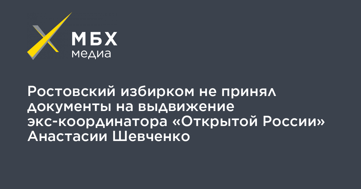 Избирательная комиссия Октябрьского района Ростова-на-Дону не приняла документы на выдвижение экс-координатора «Открытой России» Анастасии Шевченко кандидатом в депутаты Городской думы. Об этом «Юг. МБХ медиа» рассказал начальник штаба Шевченко Антон Приходько.