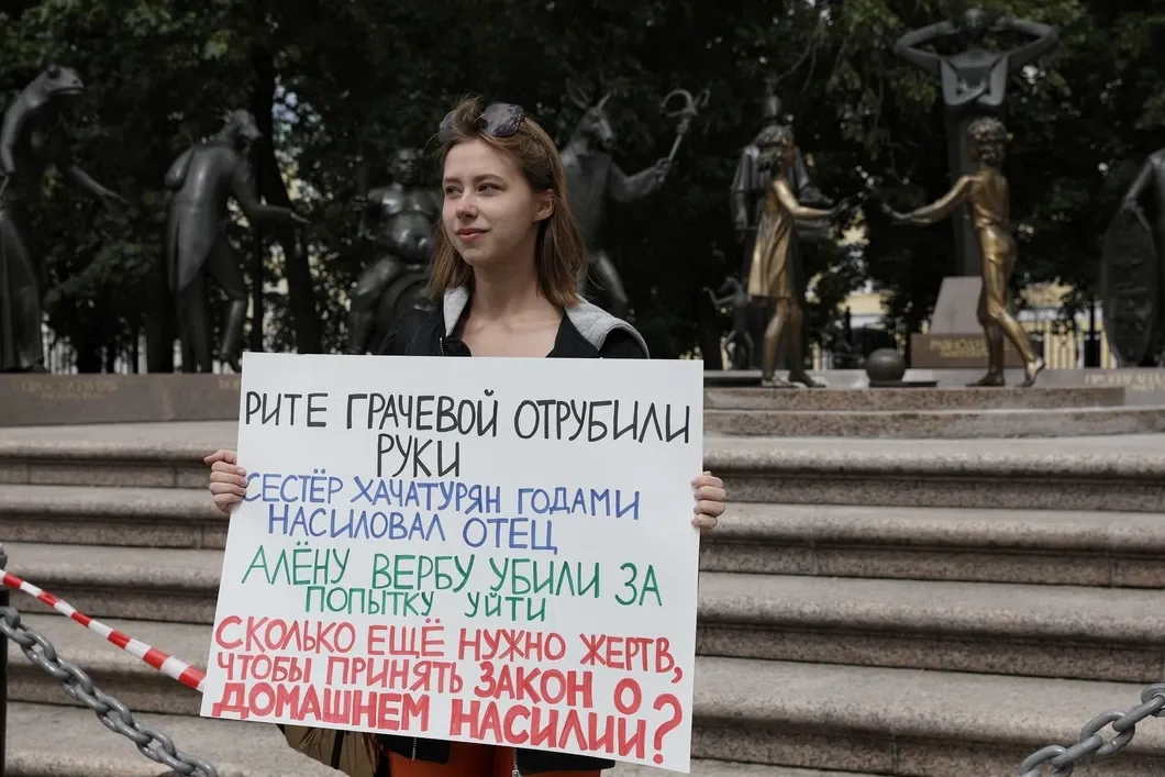В Москве во время одиночных пикетов в поддержку сестер Хачатурян задержали четверых человек. Обновлено