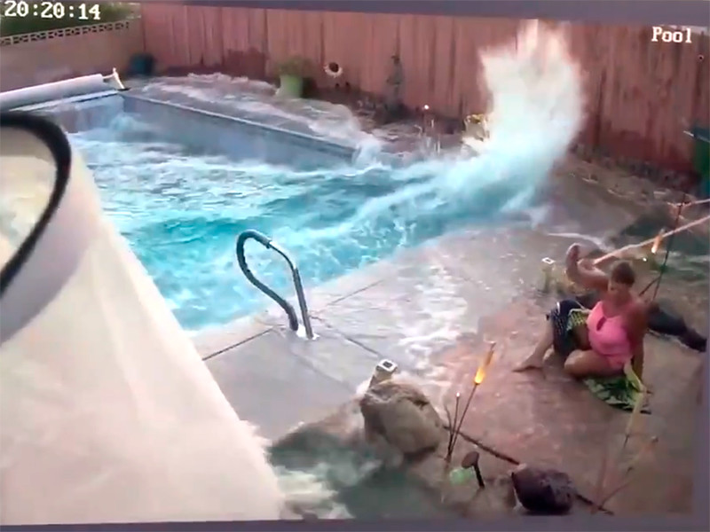 Во время землетрясения в Калифорнии волна "цунами" в бассейне чуть не смыла женщину (ВИДЕО)