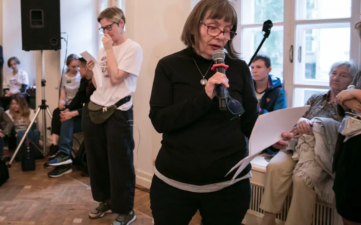…Кто-то говорит, предваряя чтение стихов: насилие в семьях — наследие советской семейной жизни. Озлобленной, скученной, коммунальной. Но это — разговор бесконечный. Не будем грешить на травму Гражданской войны, крепостного права и первородного греха: все причастны… Куда важнее четкие цифры: «согласно медиаисследованию «Медиазоны», за 2016–2018 гг. 80% женщин, осужденных по ст. 105 УК РФ «Убийство», сидят за самооборону при домашнем насилии». (Как раз перед началом вечера стало известно о приговоре безногой женщине в Забайкалье, убившей мужа при самообороне от привычного пьяного «домашнего насилия»).