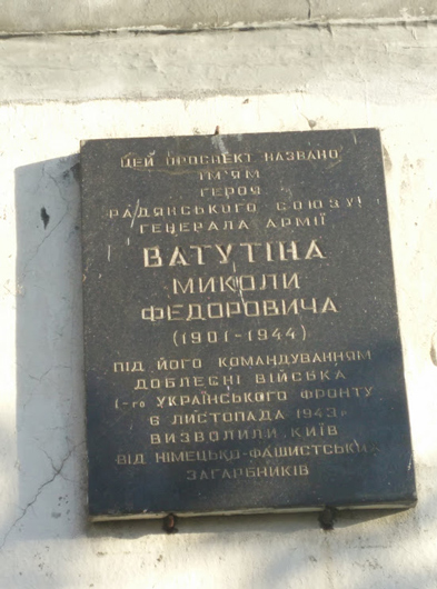 © Л. Залиток На проспекте Шухевича в Киеве Замена имени генерала армии Николая Ватутина (смертельно раненого в бою с отрядом Украинской повстанческой армии в феврале 1944 года) на имя главнокомандующего УПА Романа Шухевича (убитого 5 марта 1950 года в бою со спецподразделением МГБ) имела очевидную историческую подоплеку — на топонимическом уровне победа должна достаться националистическому подполью.