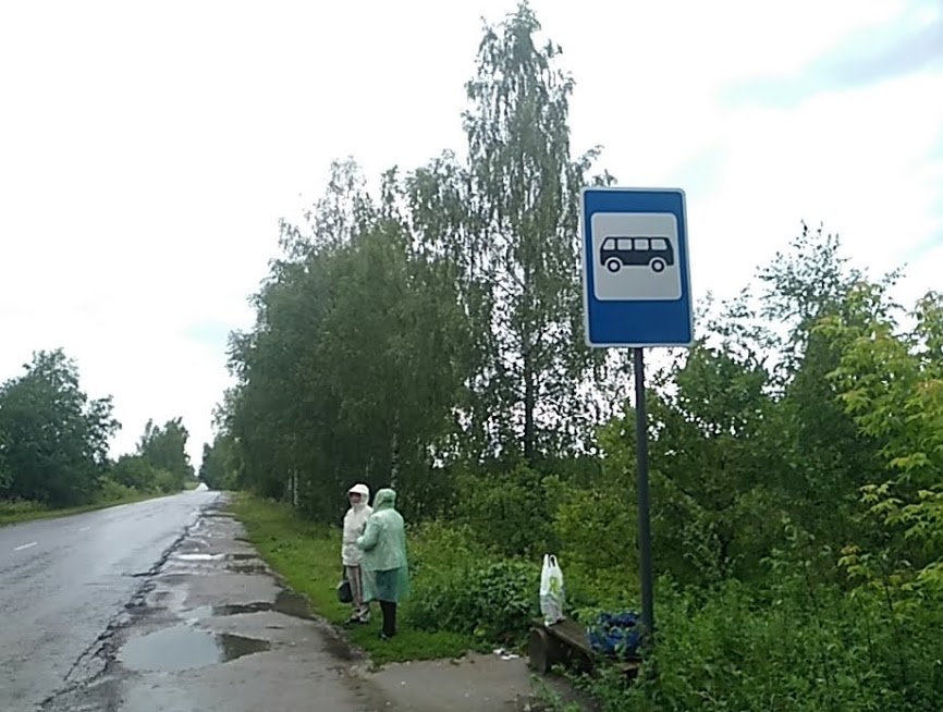 В дождливую погоду пожилые люди вынуждены мокнуть под дождем. Интервал движения автобусов составляет около 20 минут. Также на остановках нет урн, остановочных площадок, освещения, не нанесена предусмотренная для остановок дорожная разметка.