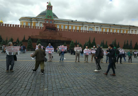 В Москве на Красной площади крымские татары провели пикет против репрессий, сообщает корреспондент "Граней" с места событий.