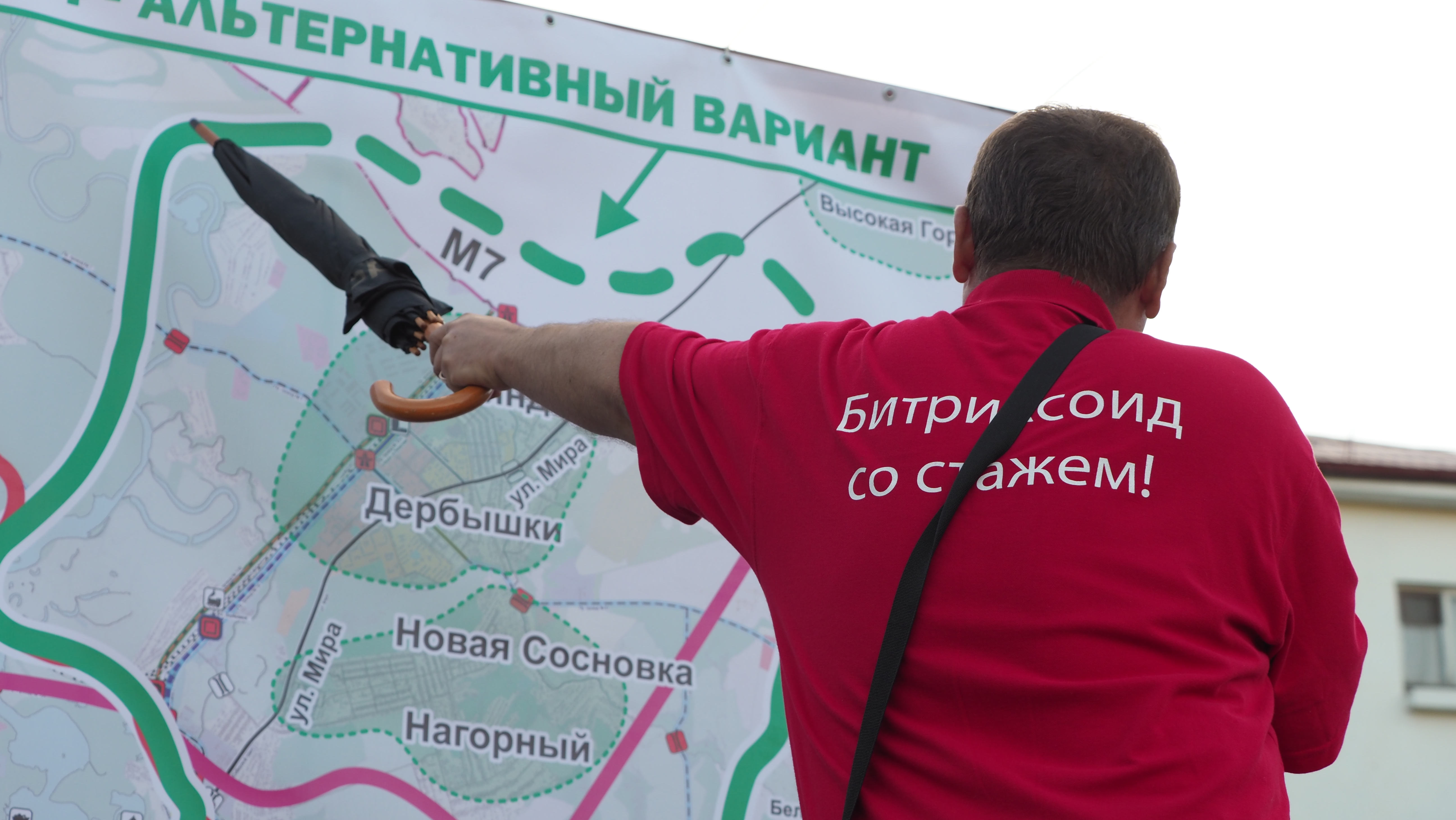 Еще как есть, напомнили публике ораторы. Организатор митинга — Денис Кропотов из Дербышек — перечислил три варианта идущей с востока на север магистрали, предложенные мэрией после того, как начались протесты. Первый, уточнил он, совпадает с представленным в проекте Генплана — по улице Главной. Единственное — магистраль пообещали сузить. Но не исключено, что после того, как автомобили на ней встанут в пробках, ее решат расширить. Второй (по улицам Тополевой и Шоссейной) и третий (по улице Дубровка в поселке Нагорный) предлагались год назад, когда проект нового Генплана первый раз представили общественности. И год назад чиновники клятвенно пообещали от них отказаться.
