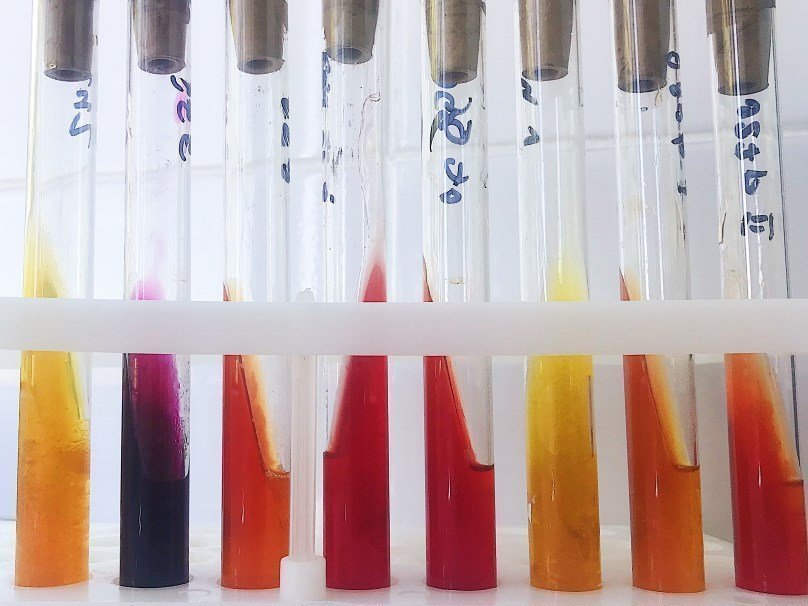 Сейчас же микромир переливается всеми цветами радуги, а скорость совершенствования питательных сред поражает воображение. В состав среды могут входить углеводы, мочевина или другие субстраты, а когда микробики их расщепляют, то образуются вещества, изменяющие рН среды. В результате появления продуктов ферментации индикатор окрашивает колонии микробов и среду вокруг, помогая отличить их от бесцветных колоний микробов, не ферментирующих данный субстрат. А на фото — среда Олькеницкого, она содержит глюкозу, лактозу, сахарозу и мочевину — каждый может есть то, что ему нравится, а среда поменяет цвет и выдаст своего обитателя с потрохами.