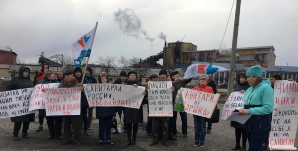 - 1 марта перед зданием горбольницы Анжеро-Судженска прошел пикет медсестер и санитарок, они держали плакаты "Санитарка не уборщица!" и "Нет сокращению младшего медперсонала!".