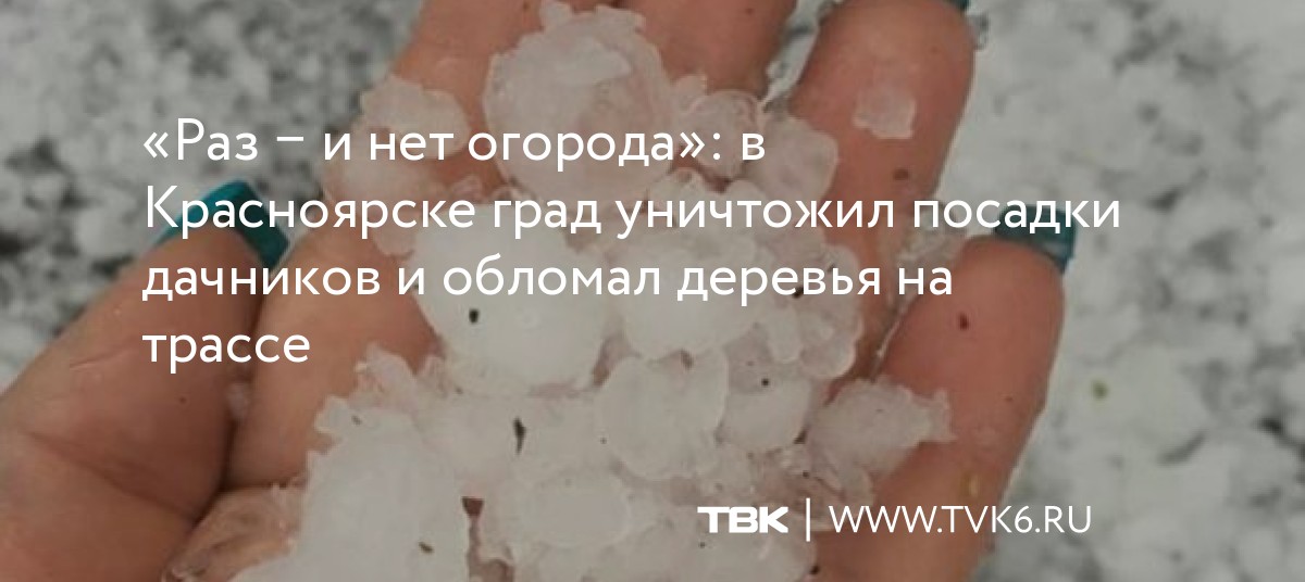 Погодное явление, пришедшее в Красноярск днем 10 июля вызвало не столько восхищение, сколько негодование. Например, дачники пригорода, которые не успели укрыть грядки, остались без своих посадок. На востоке от Красноярска град размером с черешню усыпал огороды и уничтожил все саженцы, отмечают авторы видео.