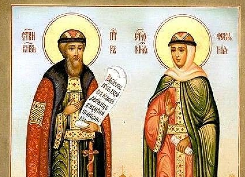 История святых Петра и Февронии служит примером любви и верности. Заболевший князь обратился за помощью к простолюдинке, которая обещала его исцелить, но взамен взяла обещание жениться на ней. Князь принял помощь, но своего обещания не выполнил. Вспомнил о данном слове он только когда вновь заболел. Тогда Феврония исцелила его второй раз, после чего они обвенчались. Муромские бояре взбунтовались и не приняли княжну простого происхождения. Наиболее именитые из них потребовали изгнать княжну-простолюдинку из города. Тогда князь Петр покинул город вместе с ней. В борьбе за власть над Муромом бояре не смогли договориться, городские дела пришли в запустение. Тогда бояре и жители города обратились к Петру и Февронии с просьбой вернуться и править ими и покаялись в учиненной смуте. Княжеская семья прожила в любви и согласии долгие годы.