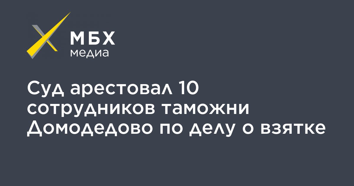 Басманный районный суд Москвы арестовал 10 сотрудников таможни Домодедово по делу о получении взятки, сообщает ТАСС со ссылкой на пресс-службу суда.