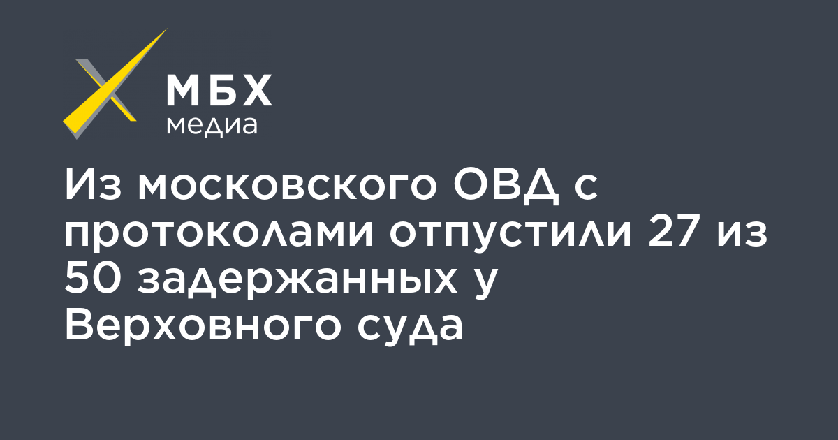 Из московского отдела полиции «Мещанское» отпустили 27 из 50 человек, которых задержали у Верховного суда на акции в поддержку крымских татар. Об этом «МБХ медиа» сообщил активист Константин Котов.