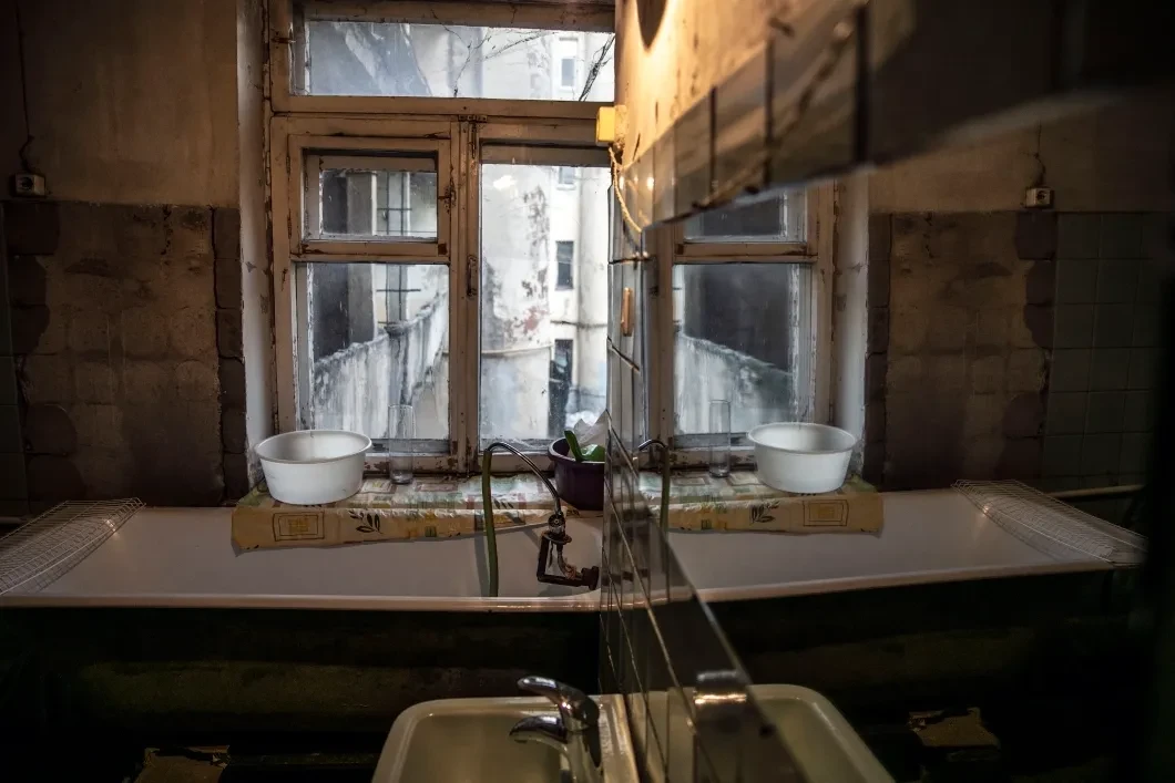 Анастасия Кот, темноволосая женщина 35 лет, сидит в маленькой комнате общежития Минобороны на Большой Пироговской улице, 51. Семья бывшего военного психолога Игоря Кота живет здесь с 91-го года после переезда из Сибири. На стене прикрывает трещину советский ковер. На антресоли пылятся книги из домашней библиотеки. За шкафом мелькает мышь, проскользнувшая из подвала. Дверей в комнате нет — их сняли судебные приставы. Вместо них в проемах прозрачная пузырчатая пленка.