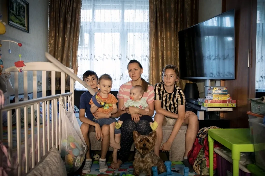 Сейчас она находится в декретном отпуске: в прошлом году у нее родилась дочка Ангелина. Мама с девочкой и тремя малолетними сыновьями — Кириллом, Никитой и Артемом — живут в двух крошечных, заставленных мебелью комнатах. Вместе с ними в общежитии ютятся пес по кличке Марсель и кот Мурзик.