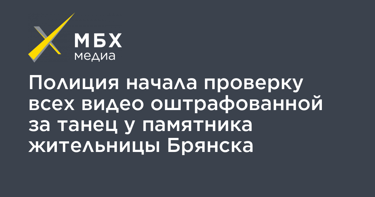 В Брянске полиция начала проверку всех видеозаписей местной жительницы Алены Червяковой, которая была оштрафована на 30 тысяч рублей после танца на фоне памятника «Курган Бессмертия», сообщает в своем Telegram-канале руководитель международной правозащитной группы «Агора» Павел Чиков.