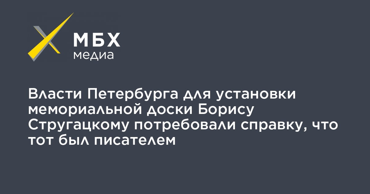 Комитет по культуре Санкт-Петербурга потребовал справку о том, что Борис Стругацкий был писателем – без нее чиновники не позволяют установить мемориальную доску на доме, в котором жил один из братьев-фантастов. Об этом у себя в блоге на «Эхе Москвы» сообщил депутат заксобрания Петербурга Борис Вишневский.