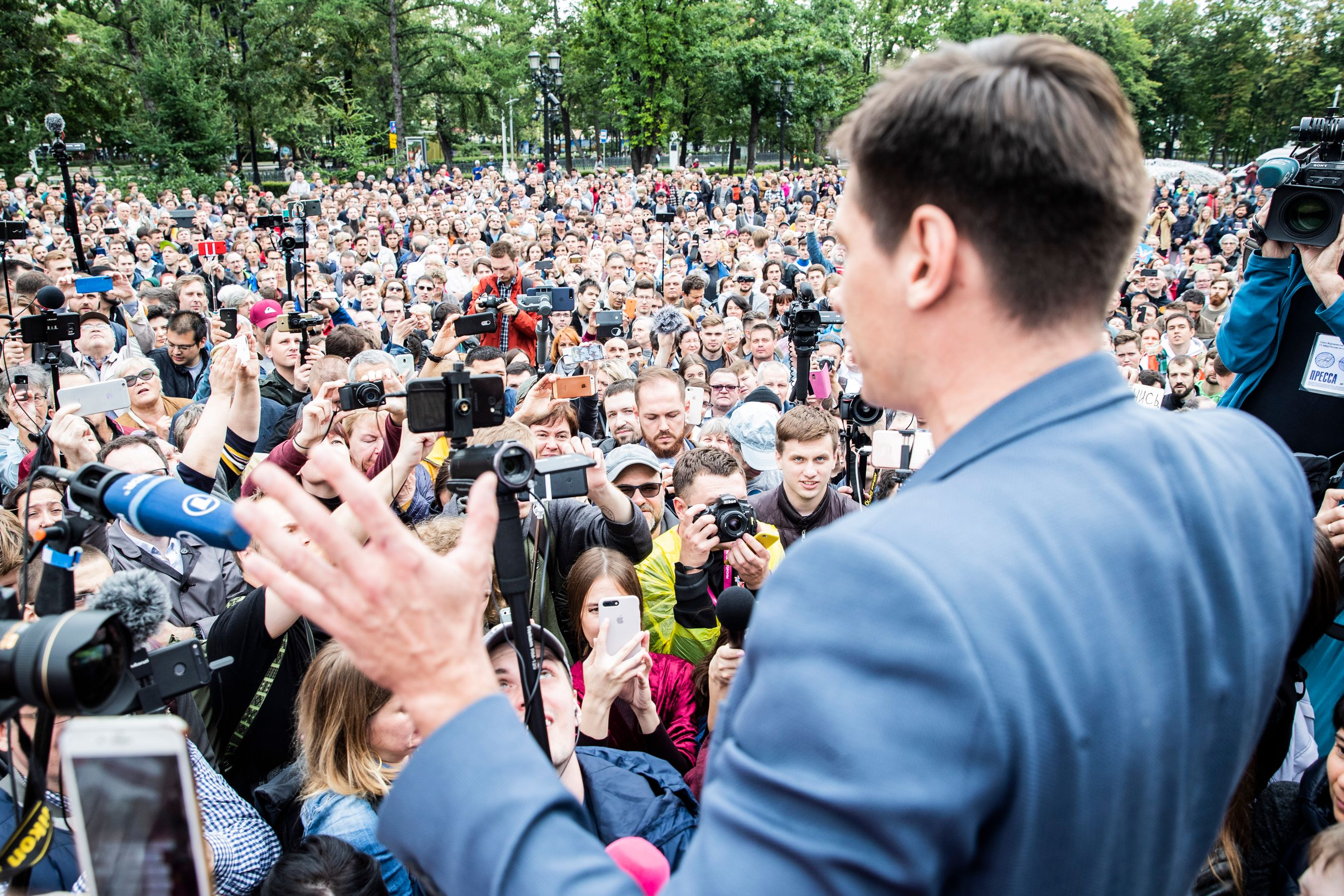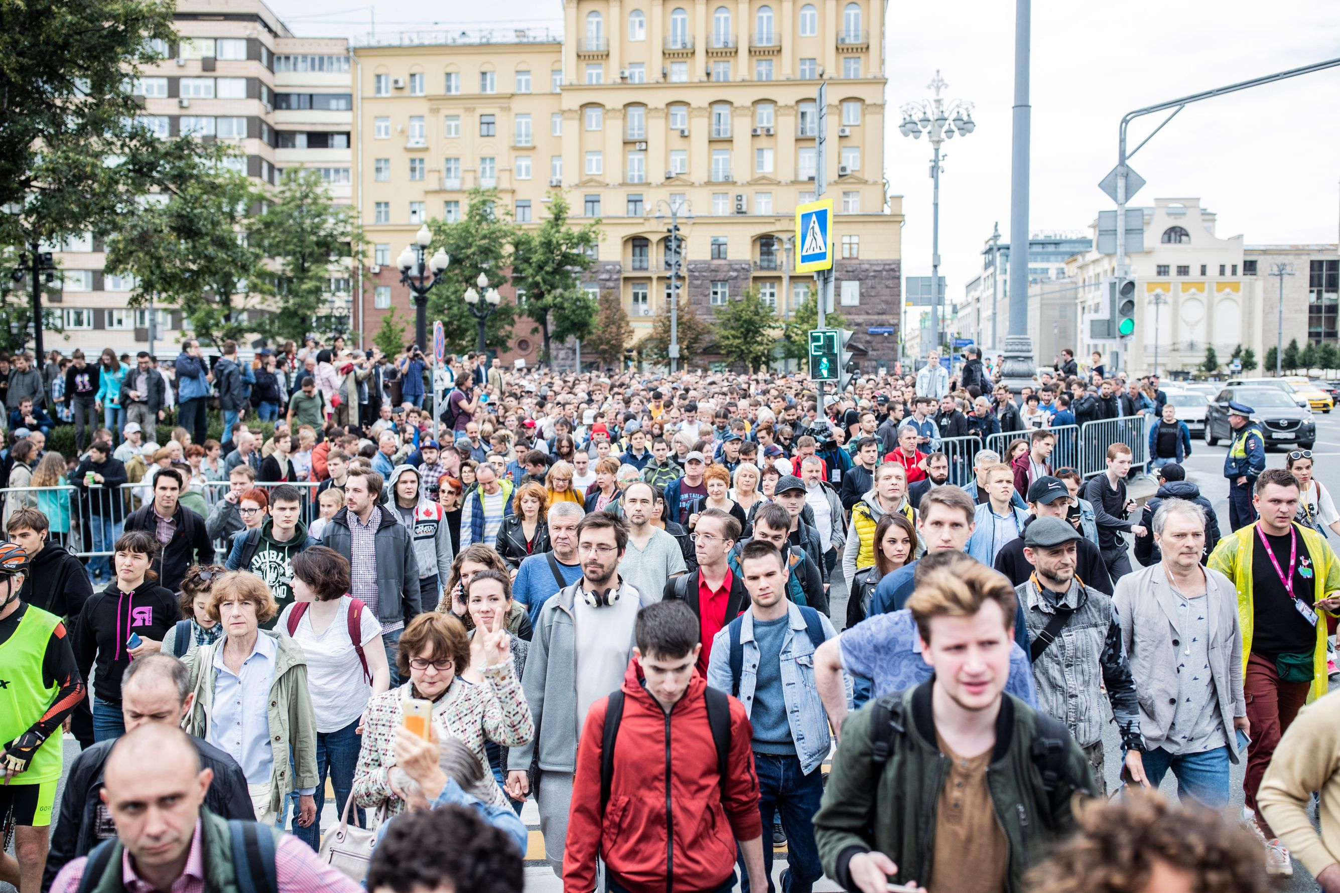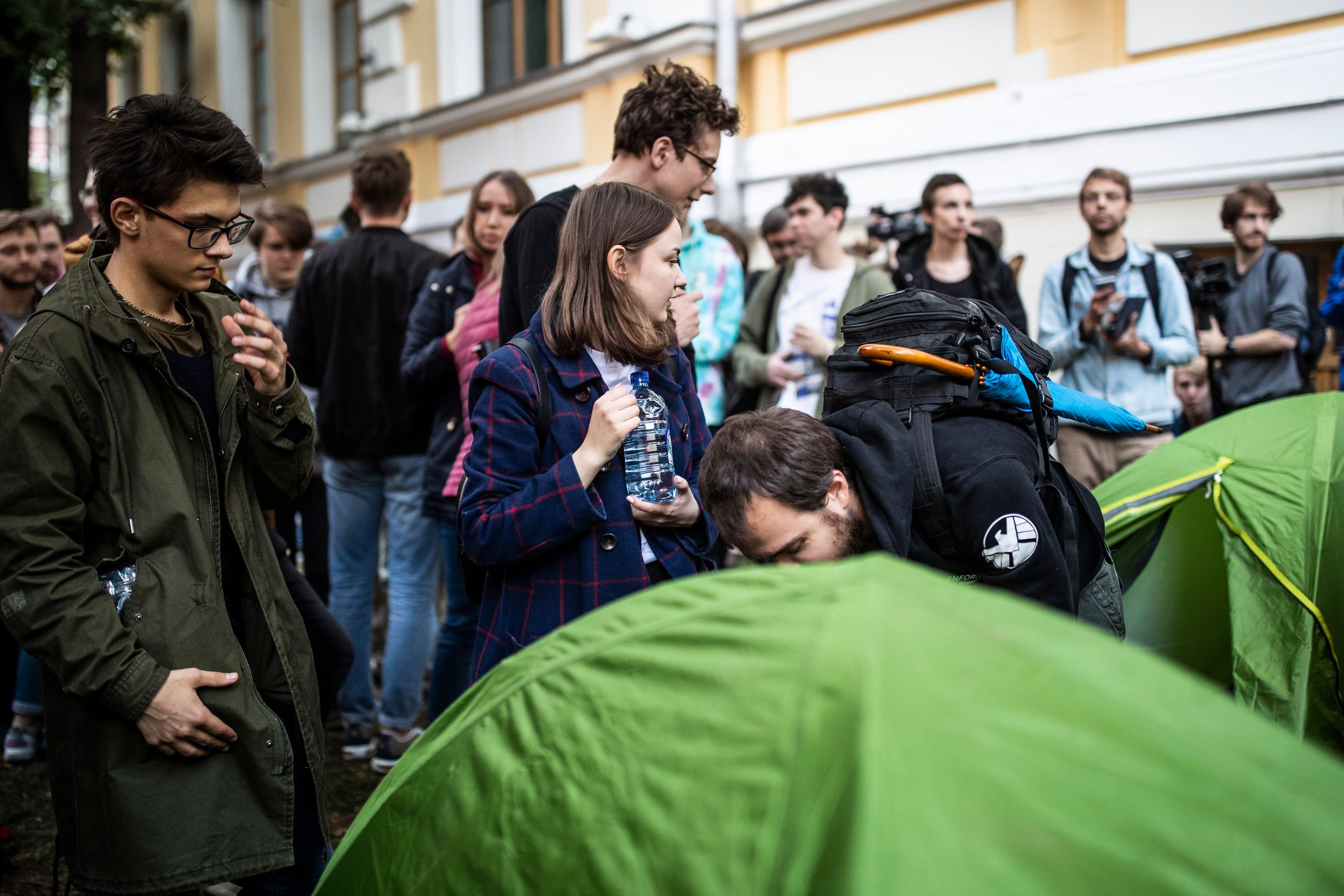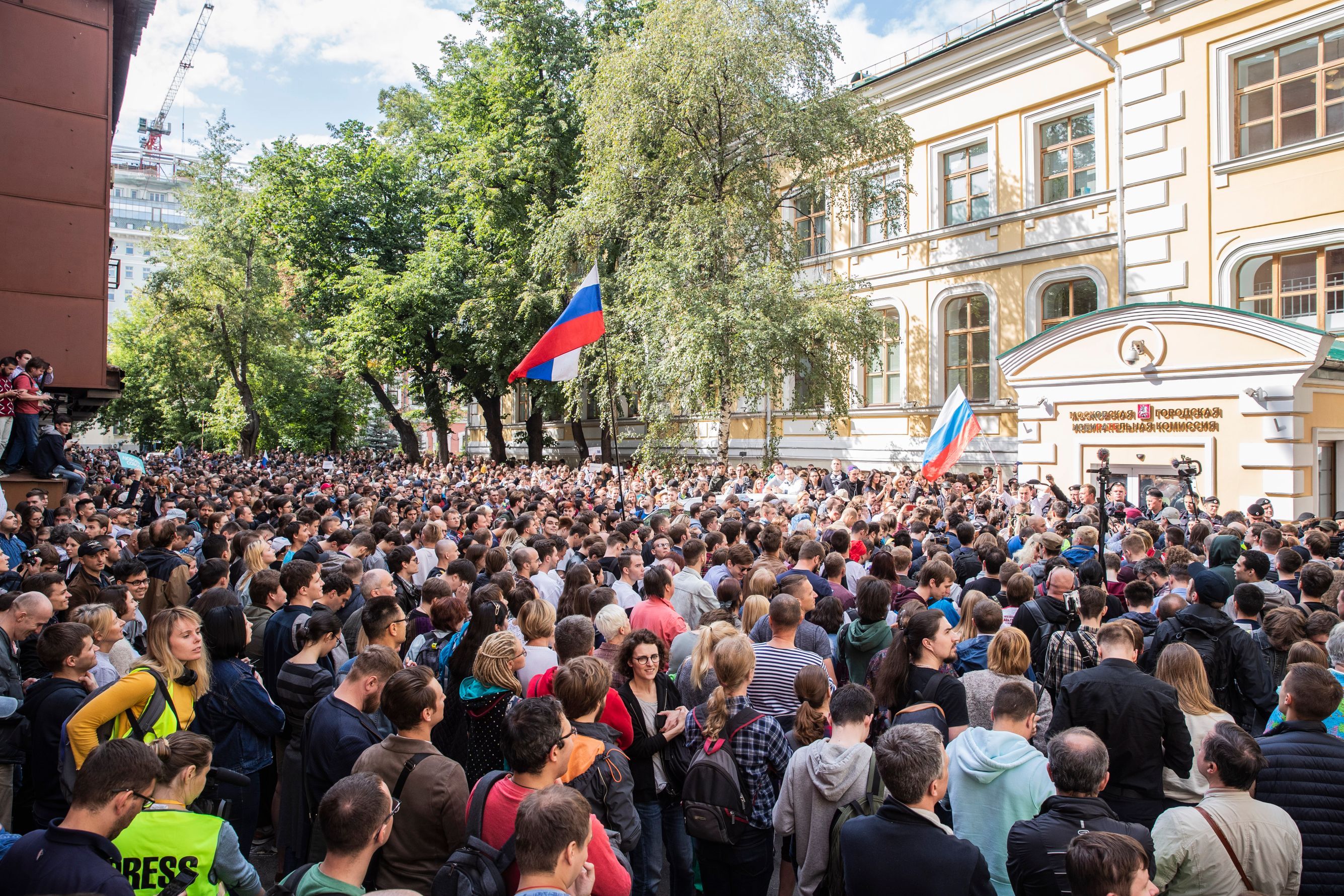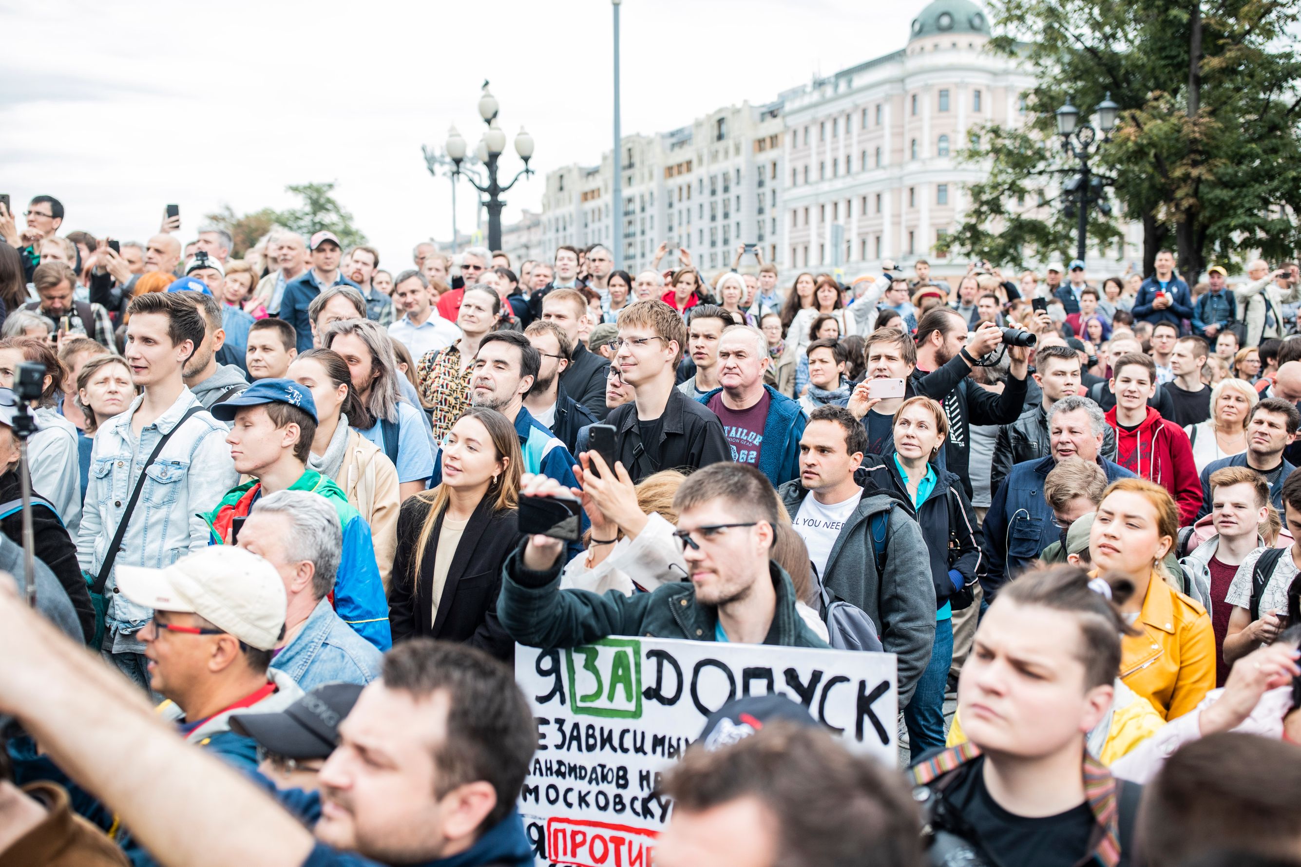 В столице 14 июля прошла акция в поддержку независимых кандидатов на выборах в Мосгордуму. Она началась в Новопушкинском сквере как «встреча муниципальных депутатов с избирателями». Затем люди дошли до мэрии и горизбиркома — где потребовали встречи с его главой, который, по словам помощника, в это время был на даче. Вечером протестующие попытались поставить палатки во дворе избиркома — акцию тут же жестко и стремительно разогнала полиция. Задержаны около 40 человек, в том числе кандидаты в депутаты Илья Яшин, Любовь Соболь, Юлия Галямина и Иван Жданов.