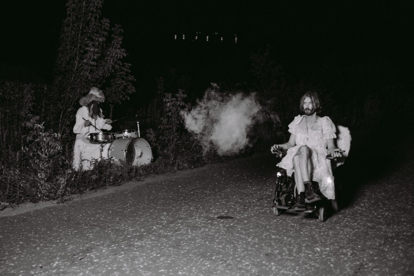 Арсений Креститель в платье ездит по ночной трассе на коляске. Премьера клипа на «Медузе»