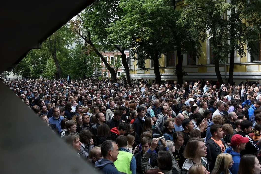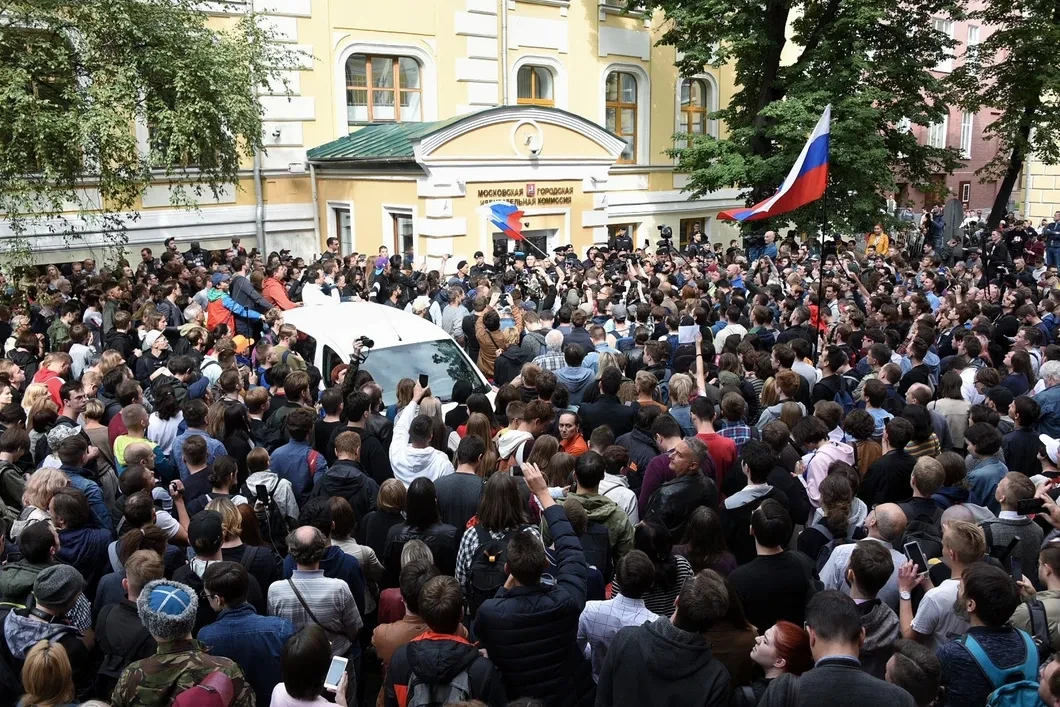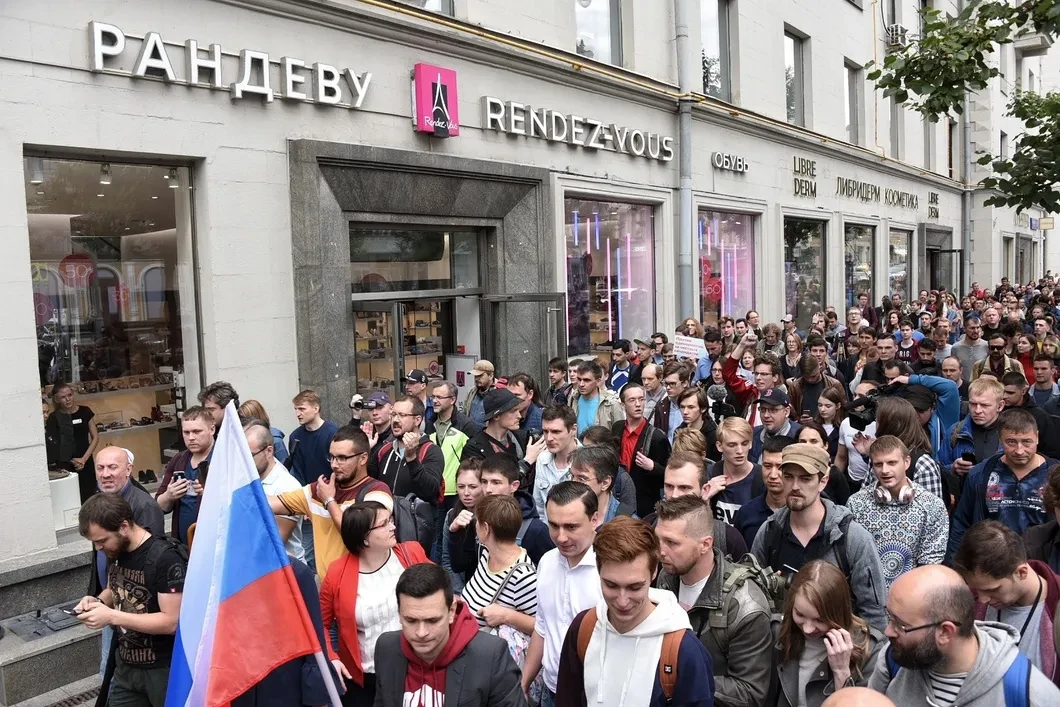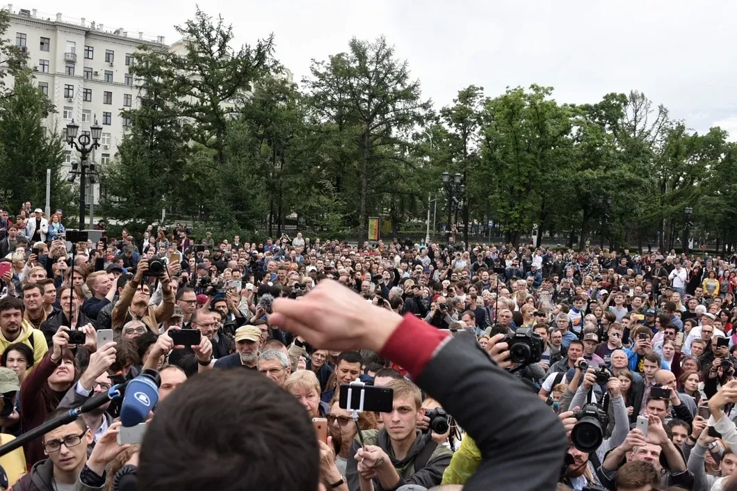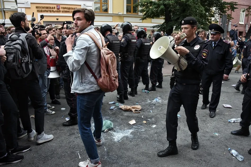 В Москве 14 июля прошла «массовая встреча» независимых кандидатов в депутаты Мосгордумы с избирателями. Она началась со сбора избирателей и выступлений кандидатов с импровизированной трибуны в Новопушкинском сквере. Продолжилась короткой прогулкой по Тверской до мэрии и стуком в ее двери, а закончилась во дворе Мосгоризбиркома — жесткими столкновениями протестующих и «космонавтов».