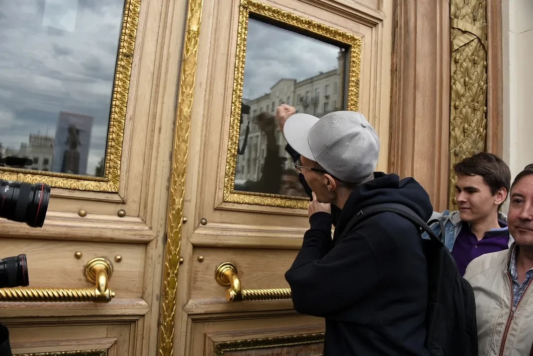 Пройти внутрь здания Мосгоризбиркома у кандидатов не получилось. Полиция закрыла проход. На самом деле, пытались оказать сопротивление прямо на входе в ворота — и даже кого-то сдерживали, но толпа прорвалась. На этом этапе от ударов дубинками и задержаний отказались, что для многих участников несогласованной акции тоже стало неожиданностью.